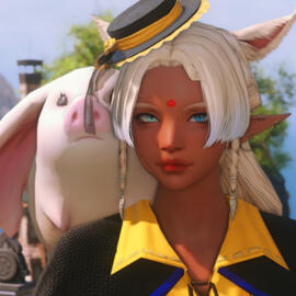Haykrii (Hai-kree) was raised in Kugane to a settled-down adventurer mother & self-made merchant father, with an odd occurrence - she was born with both Miqo'te and Elezen ears! With her father doting on her, she grew to be spoiled & studious, but she was restless for adventure.When she met her now husband, Tommy, a well-traveled samurai, he lit a fire under her to follow her dreams. They left for Eorzea and eloped without telling her family until she was already across the salt.She became a paladin for the Ishgardian Orthodox Church, fought in the Dragonsong War (and all the other potentially world-ending events since...) and is now a jack-of-all-trades freelancer, living in Shirogane & running her teahouse. She makes it a point to visit her parents in the city often.She hopes to settle in her mother's homeland of Radz-at-Han if they ever build adventurer housing.